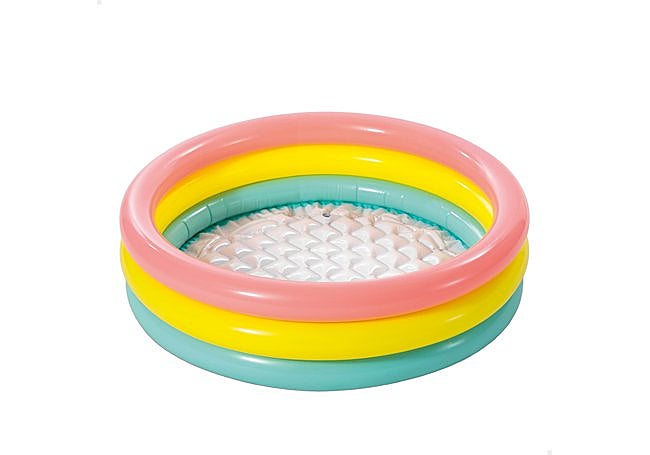 Gracias a su diseño redondo y sus colores vivos, esta piscina hinchable de Intex convierte cualquier rincón del jardín o la terraza en un espacio refrescante para los más pequeños. Con unas medidas de 86 x 25 cm y capacidad para 68 litros, el modelo Sunset destaca por su base acolchada y tres aros de colores diferentes que aportan un toque alegre y seguro.