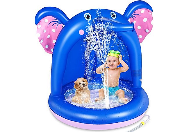 Gracias a su original forma de elefante y toldo incorporado, esta piscina hinchable de lenbest ofrece diversión y protección solar para bebés y niños pequeños. El diseño integra un aspersor y un fondo de burbuja inflable de doble capa, lo que proporciona una superficie antideslizante y cómoda en todo momento.