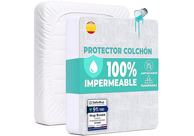 Con una mezcla equilibrada de algodón y microfibra, este protector de colchón Flowen de 90x190 cm ofrece una solución práctica para quienes buscan mantener su cama protegida y fresca. El formato tipo sábana bajera, disponible con elásticos en las esquinas o en todo el contorno, facilita la colocación y asegura un ajuste estable incluso en colchones altos.