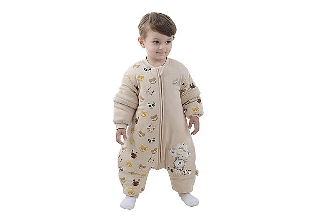 El saco de dormir MIKAFEN de invierno tiene una estructura de piernas separadas que permite libertad de movimiento. Su exterior es 100% algodón y el relleno es ultrasuave. Cuenta con un sistema de cremalleras sin níquel para facilitar el cambio de pañales y protectores en el cuello, así como costuras reforzadas. Este diseño asegura un ajuste seguro y duradero.