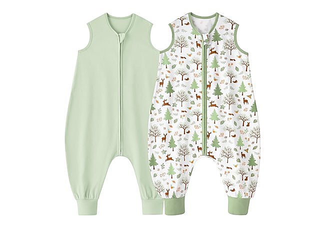 El pack de dos sacos de dormir Looxii 0.5 TOG está fabricado con tejido ultratranspirable. Está confeccionado con algodón suave en contacto con la piel. El diseño con piernas abiertas permite libertad de movimiento. Las cremalleras dobles facilitan el cambio de pañal.