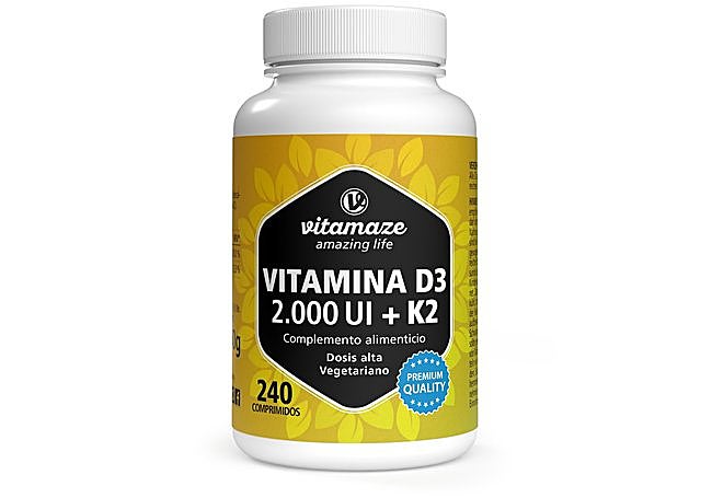 Con una formulación alemana de alta pureza, Vitamaze - amazing life presenta un suplemento de vitamina D3 y K2 en comprimidos vegetarianos. Cada dosis aporta 2000 UI de vitamina D3 y 100 mcg de K2 MK7 all-trans, garantizando máxima biodisponibilidad y sin aditivos innecesarios. La ausencia de gluten y organismos modificados genéticamente facilita su integración en cualquier rutina.