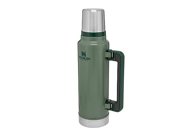 Si buscas un termo para largas jornadas, el Stanley Classic Legendary de 1,4 litros destaca por su robustez y capacidad de mantener el café caliente hasta 40 horas o frío durante 35. Su cuerpo de acero inoxidable 18/8 resiste golpes y corrosión, ideal tanto para la oficina como para la montaña.