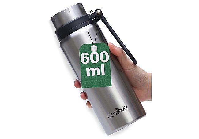 Gracias a su diseño compacto y robusto, el termo de acero inoxidable Cosumy de 600 ml es un compañero fiable para mantener la temperatura de las bebidas en cualquier entorno. Su doble pared aislante conserva el café caliente hasta diez horas y las bebidas frías durante doce, sin que el exterior sude ni transmita calor.