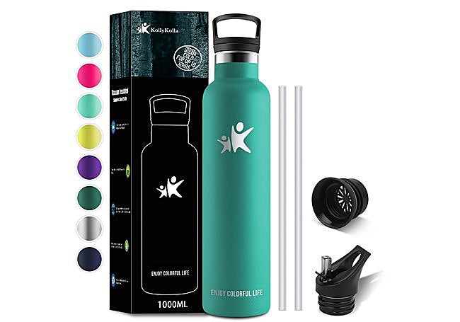 La botella térmica KollyKolla de 1 litro destaca por su diseño robusto y elegante, ideal para mantener bebidas calienteshasta 12 horas y frías hasta 24 gracias a su aislamiento al vacío de doble pared. Su exterior no suda ni se calienta. Incluye dos tapas intercambiables: una con pajita y otra con asa y filtro, perfectas para diferentes bebidas. La abertura ancha facilita la limpieza y la incorporación de hielo.