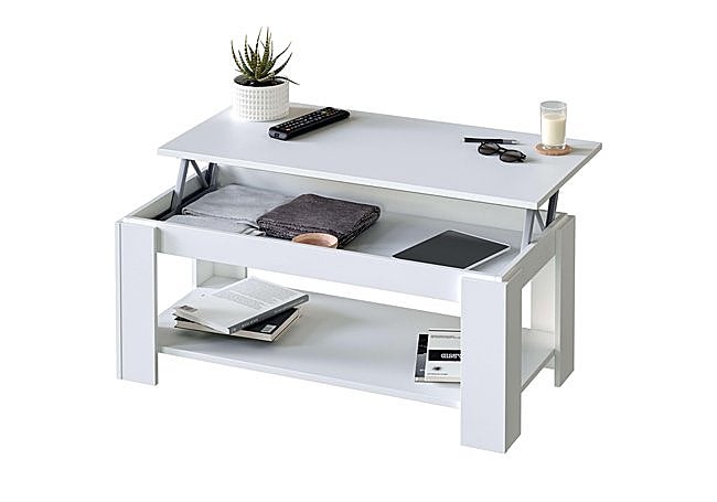 Fabricada en melamina de alta calidad, esta mesa de centro elevable Habitdesign incorpora un compartimento interior y un estante revistero que facilitan la organización. El acabado blanco Artik aporta luminosidad, mientras el mecanismo elevable permite ajustar la altura fácilmente. Su superficie resistente y limpieza sencilla completan un diseño funcional y duradero para cualquier salón moderno.