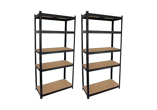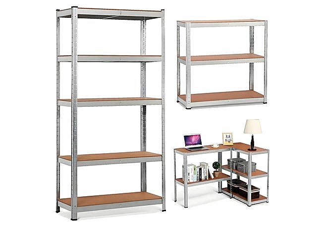 Con estructura modular versátil, el set de estanterías metálicas Nyana Home presenta cinco baldas ajustables de MDF y barras transversales para mayor estabilidad. Su capacidad total de 875 kg y montaje sin tornillos permiten organizar cargas pesadas con facilidad. El diseño galvanizado y los pies de plástico refuerzan la resistencia y protegen el suelo en cualquier entorno.