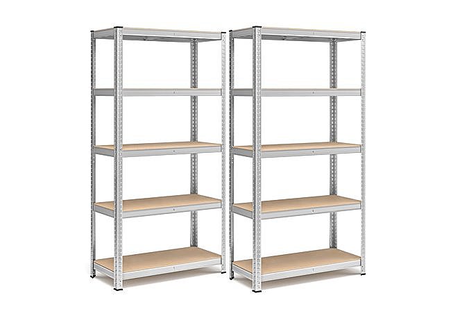Con estructura de acero galvanizado y cinco estantes ajustables, el juego de estanterías metálicas SONGMICS destaca por su robustez y capacidad de carga de hasta 875 kg. El sistema modular permite dividir cada unidad y adaptar el espacio según necesidad, mientras que los refuerzos y fijaciones aportan estabilidad y seguridad en cualquier entorno de almacenaje.