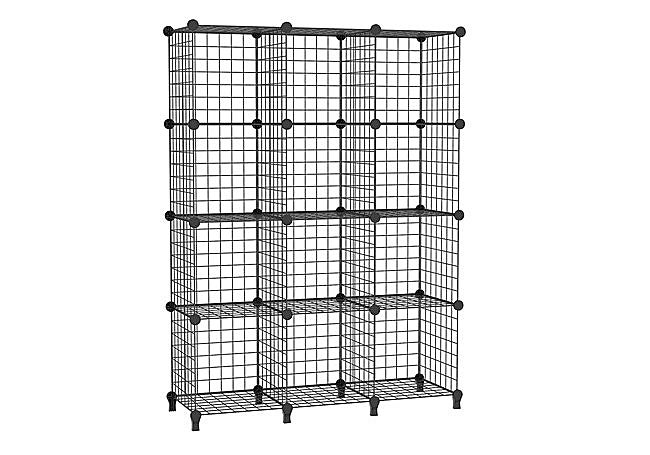 Con estructura modular de rejilla metálica, la estantería AWTATOS de 12 cubos permite organizar objetos de forma flexible y personalizada. Sus conectores de ABS refuerzan la estabilidad, mientras que los paneles elevados protegen de la humedad. El acabado en negro mate aporta un aspecto moderno y las láminas impermeables facilitan la limpieza diaria del sistema de almacenaje.