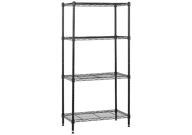 Con estructura de acero negro resistente, la estantería Amazon Basics de 4 baldas ajustables permite organizar objetos en espacios reducidos. Los estantes de rejilla se regulan cada 2,5 cm sin herramientas y soportan hasta 90 kg cada uno. Las patas niveladoras aportan estabilidad, asegurando almacenamiento seguro y práctico en cocinas, oficinas o garajes.