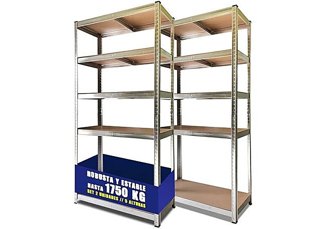 Con estructura de acero galvanizado y cinco baldas de MDF ajustables, este set de estanterías metálicas destaca por su capacidad de carga de hasta 875 kg por unidad y montaje sin tornillos. El diseño modular permite dividirlas en bancos de trabajo, aportando versatilidad y estabilidad en espacios de almacenaje exigentes, tanto domésticos como profesionales.