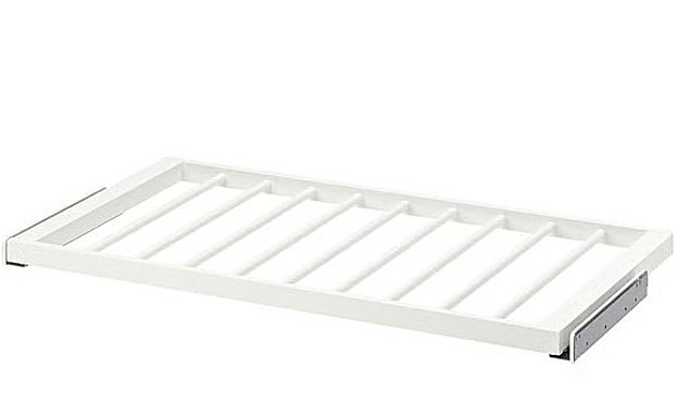 Podrás integrar este complemento en tu armario PAX en un pis pas. Pensado para que tengas siempre a la vista tus pantalones y con una estructura robusta para que dure muchos años, este perchero de la línea KOMPLEMENT me parece un auténtico indispensable. Además, cuesta sólo 45€ y está disponible en 4 colores.