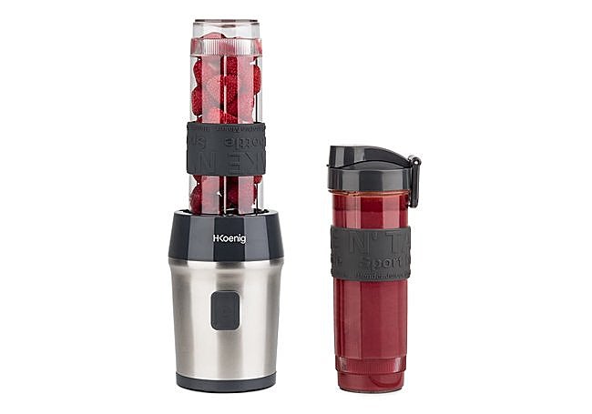 Gracias a su silueta compacta y elegante, la mini batidora SMOO9 de H.Koenig se integra sin esfuerzo en cualquier cocina moderna. Con 300 W de potencia y cuatro cuchillas de acero inoxidable, garantiza resultados suaves al procesar ingredientes duros como hielo o fruta congelada. Su diseño incluye dos botellas portátiles de 570 ml, fabricadas sin BPA, que permiten preparar y transportar batidos de manera segura.