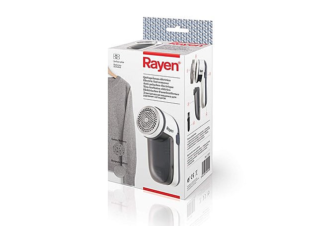 El quitapelusas eléctrico Rayen tiene un cabezal de limpieza amplio que elimina pelusas de manera eficiente. Su cubierta protectora permite un almacenamiento seguro. Funciona con pilas, lo que permite su uso sin necesidad de enchufe. Es portátil y fácil de transportar.