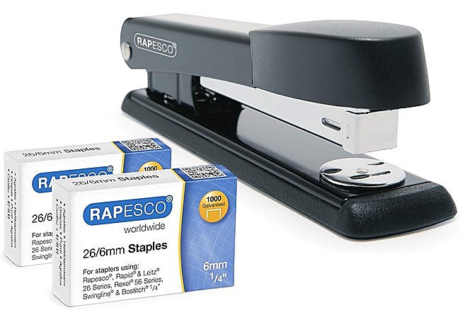 Rapesco 1602 Germ-Savvy Antibacteriano, Marlin Grapadora y 2000 Grapas 26/6 mm, Negro
