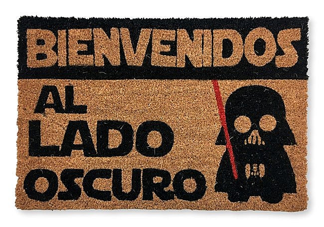 Este modelo es perfecto para los amantes de Star Wars. El modelo “Bienvenido al Lado Oscuro” de koko doormats combina humor y diseño en una alfombra de entrada fabricada con fibra de coco natural y base de PVC antideslizante. Sus dimensiones de 60x40 cm encajan en la mayoría de puertas, aportando personalidad y una bienvenida diferente.