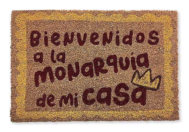 Este felpudo convierte la entrada en un espacio acogedor y divertido. Fabricado en fibra de coco natural y con base antideslizante de PVC, mide 60x40 cm y se adapta a cualquier recibidor, porche o jardín. El diseño “Bienvenidos a la Monarquía de mi Casa” añade un toque de humor desde el primer paso. Fácil de sacudir o aspirar, este felpudo resiste el uso diario.
