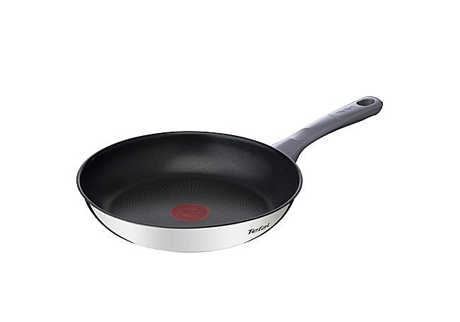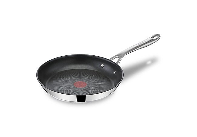 El modelo Jamie Oliver de Tefal en acero inoxidable de 28 cm combina un revestimiento antiadherente reforzado con titanio y tecnología Thermo-Signal para una cocción precisa. Su mango profesional remachado aporta seguridad, mientras que la compatibilidad con horno y lavavajillas facilita el mantenimiento y el uso diario.