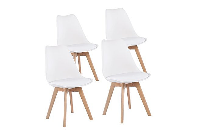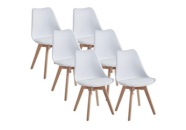 Con líneas limpias y estructura robusta, el pack de 6 sillas DEWINNER combina asiento acolchado en cuero sintético y patas de madera de haya maciza. El respaldo de arco se adapta a la espalda, mientras los patines antideslizantes protegen el suelo y reducen el ruido. El montaje sencillo y la superficie fácil de limpiar completan su propuesta funcional.