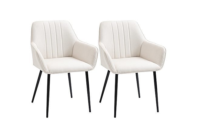 El pack de dos sillas de comedor HOMCOM incluye un respaldo curvo que se adapta a la forma de la espalda y un asiento acolchado. Su estructura metálica proporciona estabilidad y resistencia. El tapizado en lino transpirable ayuda a mantener la silla fresca. Las patas cuentan con protectores antideslizantes para evitar deslizamientos.