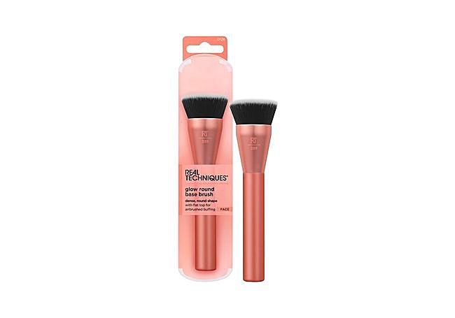 Con un cabezal redondo y plano, esta brocha de maquillaje Real Techniques Glow tiene cerdas sintéticas densas diseñadas para la aplicación y el difuminado de bases líquidas o en crema. Su diseño está pensado para aplicar y difuminar la cobertura de manera uniforme.