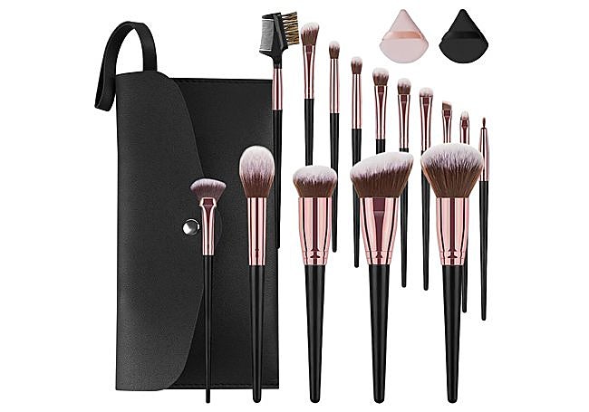 El set de brochas de maquillaje profesional BESTOPE PRO incluye 16 piezas con cerdas sintéticas suaves y mangos de madera negra. La variedad de pinceles permite aplicar base, polvos y sombras con precisión. Está fabricado con materiales resistentes y de calidad.