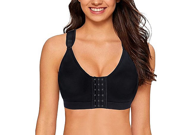 Con cierre delantero ajustable y diseño de espalda cruzada, este sujetador deportivo sin aros de YIANNA incluye tejido suave y transpirable, agentes bacteriostáticos para proteger la piel, tirantes anchos que distribuyen la presión y una banda elástica que minimiza el movimiento durante la actividad física intensa.