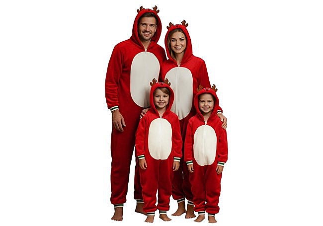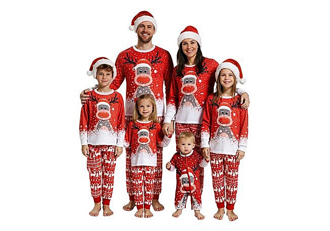 Los conjuntos de pijamas navideños para familia están disponibles en diferentes materiales, como mezclas de algodón y poliéster, que facilitan la transpirabilidad y el lavado. Los modelos presentan estampados relacionados con la temática navideña, como renos, árboles de Navidad y cuadros en tonos rojos y verdes. Existen tallas para adultos, niños y bebés, y en algunos productos también para mascotas, lo que permite que todos los miembros de la familia puedan encontrar una opción adecuada.