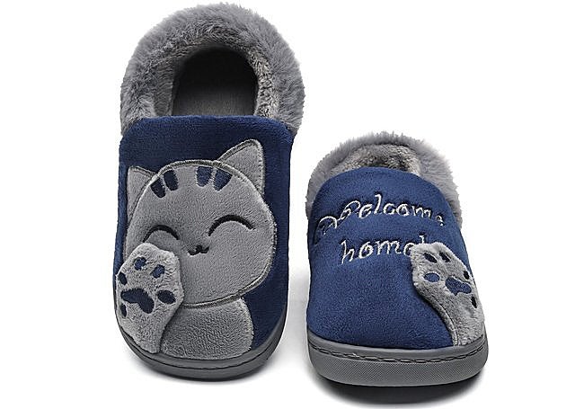 Las zapatillas Vunavueya cuentan con un forro de felpa ultrasuave, suela de goma antideslizante, patrón de dibujos animados y corte sintético. El diseño está orientado a ofrecer calidez y comodidad, y la suela contribuye a la estabilidad sobre superficies lisas.