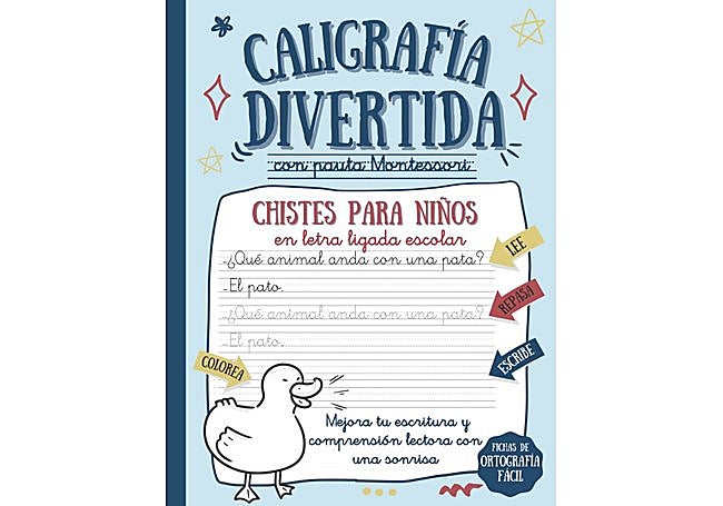 CALIGRAFÍA DIVERTIDA CON PAUTA MONTESSORI es un cuaderno diseñado para facilitar el aprendizaje de la letra ligada escolar mediante ejercicios breves y dinámicos. Incluye chistes, acertijos y frases ingeniosas que promueven la práctica de la escritura y la comprensión lectora. La pauta Montessori, junto con ilustraciones para colorear, ayuda a los niños a desarrollar una escritura clara y ordenada.