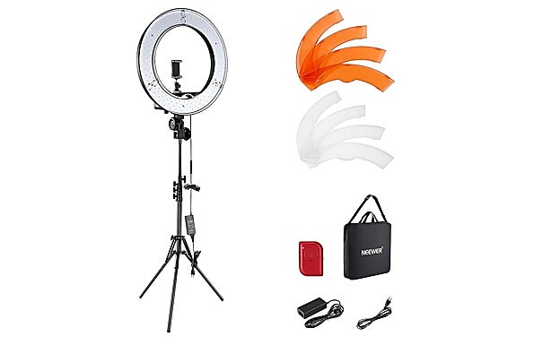 No lo vas a tener más fácil para lanzarte a emitir tu propio contenido en streaming o montar un estudio fotográfico en casa. Este aro de luz con trípode mide 48 cm de diámetro, tiene una temperatura de color de 5600K y su cabezal es compatible con prácticamente cualquier cámara DSLR. Aprovecha este descuento del 41% y llévatelo por 70,99€.