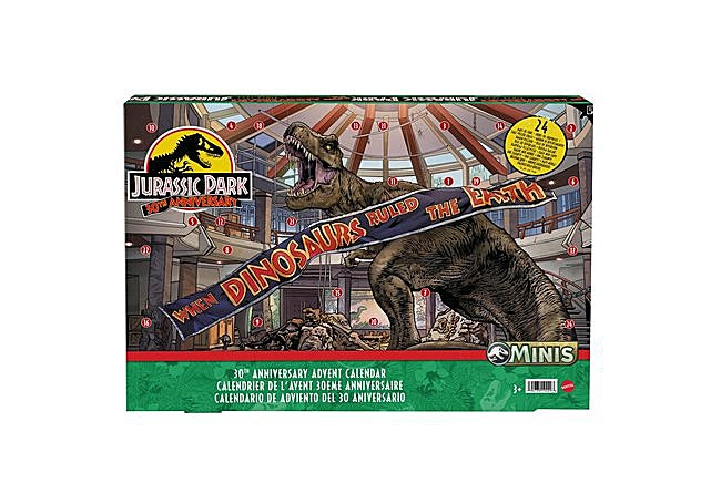 Con la inspiración de Jurassic World, este calendario de adviento de Mattel transforma la espera navideña en una aventura diaria. El formato incluye 24 sorpresas, entre mini dinosaurios, figuras de personajes y piezas para construir las emblemáticas puertas del parque, todo presentado en una caja colorida que evoca la emoción de la saga.