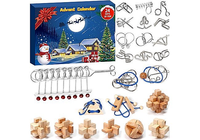 Gracias a su propuesta de rompecabezas diarios, este calendario de adviento de pozemu transforma la cuenta atrás navideña en una experiencia lúdica y estimulante. Incluye 24 puzzles de metal o madera, cada uno con un diseño diferente y materiales resistentes, pensados para mantener el interés y la diversión durante todo diciembre.