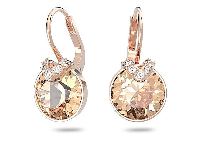 Los pendientes Swarovski Bella Collection combinan un baño de oro rosa con cristales redondos dorados y detalles de pavé transparente. Presentan un diseño colgante con acabado brillante y materiales ligeros. El cierre tipo gancho facilita su colocación y permite un uso cómodo durante todo el día.
