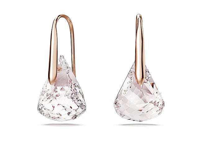 Los pendientes Swarovski Lunar presentan un diseño colgante con una cadena bañada en oro rosa. Un cristal brillante con corte y acabado pulido cuelga de la cadena. La combinación de oro rosa y cristales Swarovski de alta calidad ofrece durabilidad y calidad en el diseño.