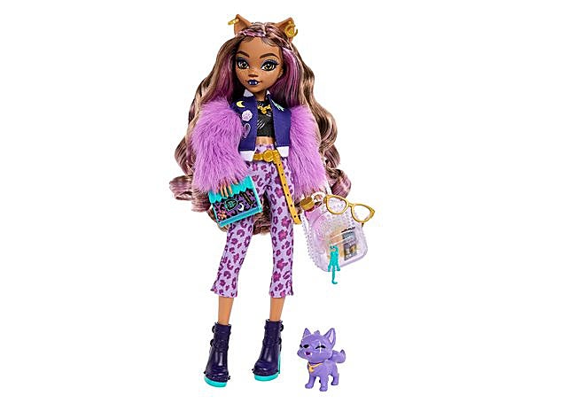Con un estilo llamativo y detalles modernos, la muñeca articulada Clawdeen Wolf de Monster High incluye una chaqueta de piel sintética, pantalones estampados y botas de plataforma. Su mascota Crescent y accesorios como mochila, gafas y cepillo aportan variedad. El conjunto incluye un diseño de moda, acabados detallados y opciones de personalización en cada elemento.