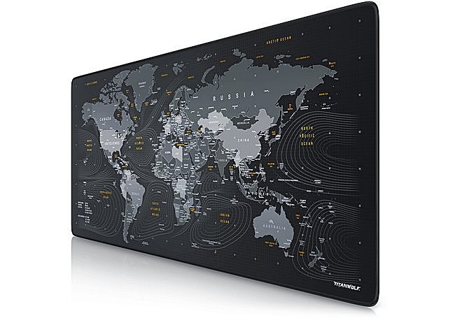 Gracias a su formato XXL de 900 x 400 mm, la alfombrilla Titanwolf Mapamundi de CSL-Computer cubre teclado y ratón con una sola superficie. Su base de goma mantiene la alfombrilla fija incluso durante movimientos intensos. El borde reforzado prolonga la vida útil, mientras que el material lavable facilita la limpieza diaria.