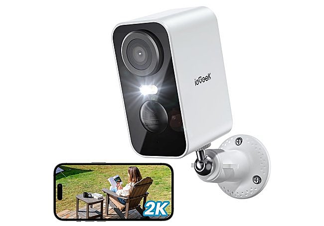 Esta cámara de vigilancia WiFi 2K de ieGeek combina batería recargable y visión nocturna en color de hasta 10 metros. Su diseño resistente permite instalarla tanto en exteriores como en interiores, adaptándose a diferentes espacios del hogar.