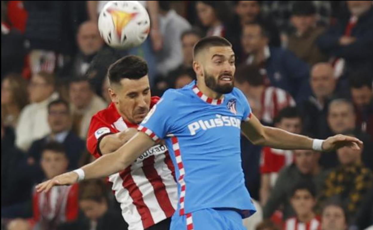Como suele hacer ante los equipos grandes, nada que ver con la parsomonia reciente mostrada por ejemplo ante el Celta, el Athletic salió a toda mecha. Por intensidad, energía, rapidez y ambición, castigó a los colchoneros en los primeros minutos. El equipo del Cholo no se enteraba de la película y se sentía perjudicado por Mateu Lahoz, que saldó las primeras dos faltas con sendas tarjetas de lo más rigurosas a Mario Hermoso y Reinildo. Ambos defensas quedaron condicionados para el resto del partido y, además, se perderán por acumulación el derbi ante el Real Madrid. El mozambiqueño rozó la expulsión por encararse con el trencilla valenciano.