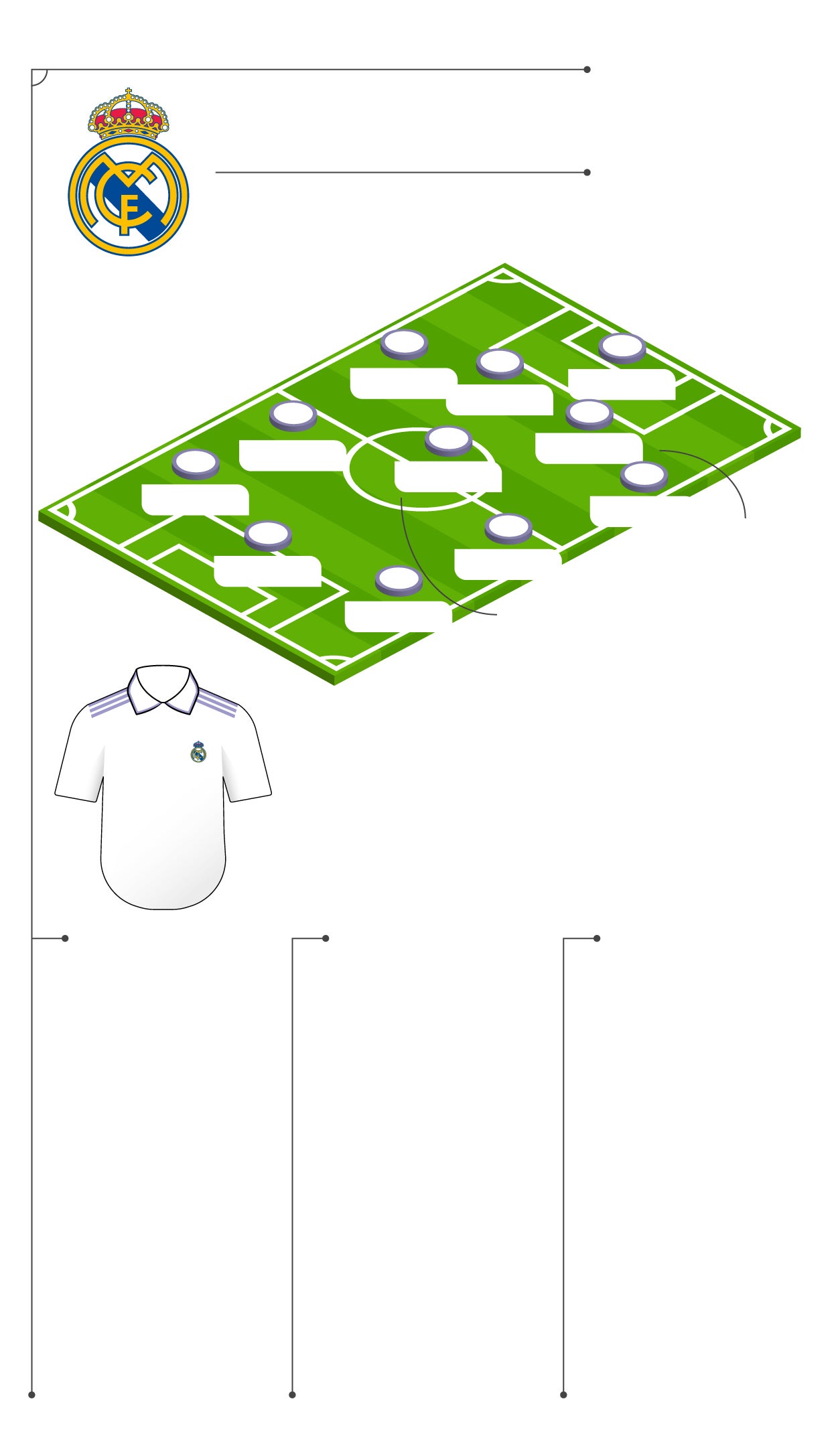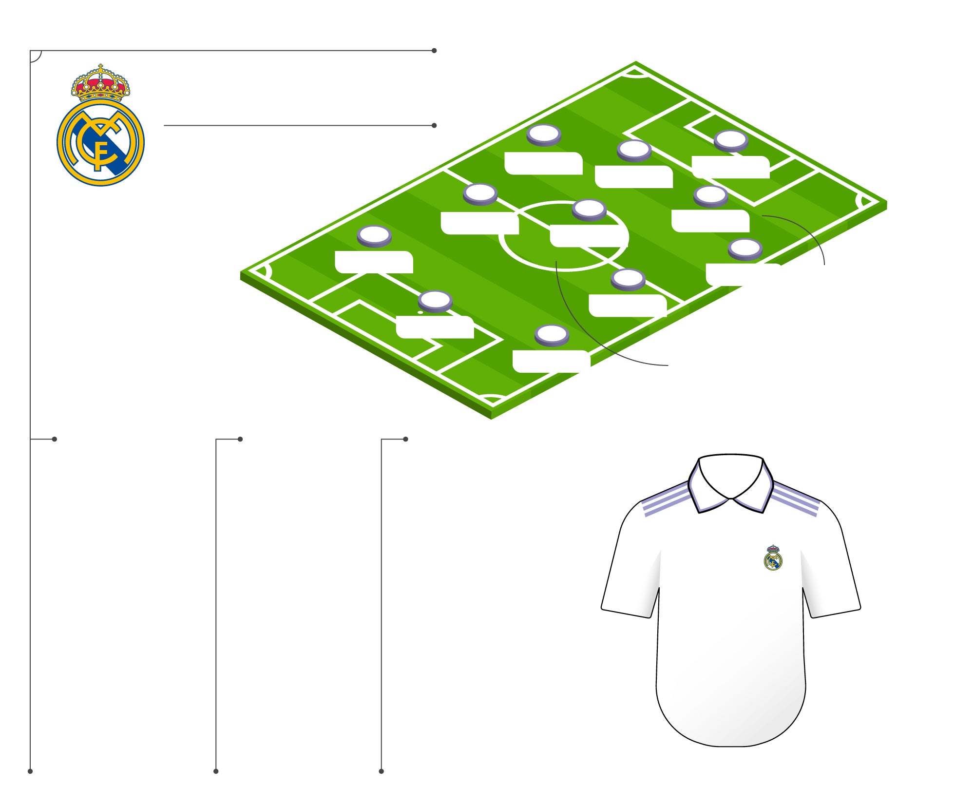 Un clásico de Ancelotti, este dibujo permite jugar con Valverde como comodín, con llegada para ocupar el costado derecho del ataque blanco aunque también sentido táctico y físico como cuarto centrocampista.