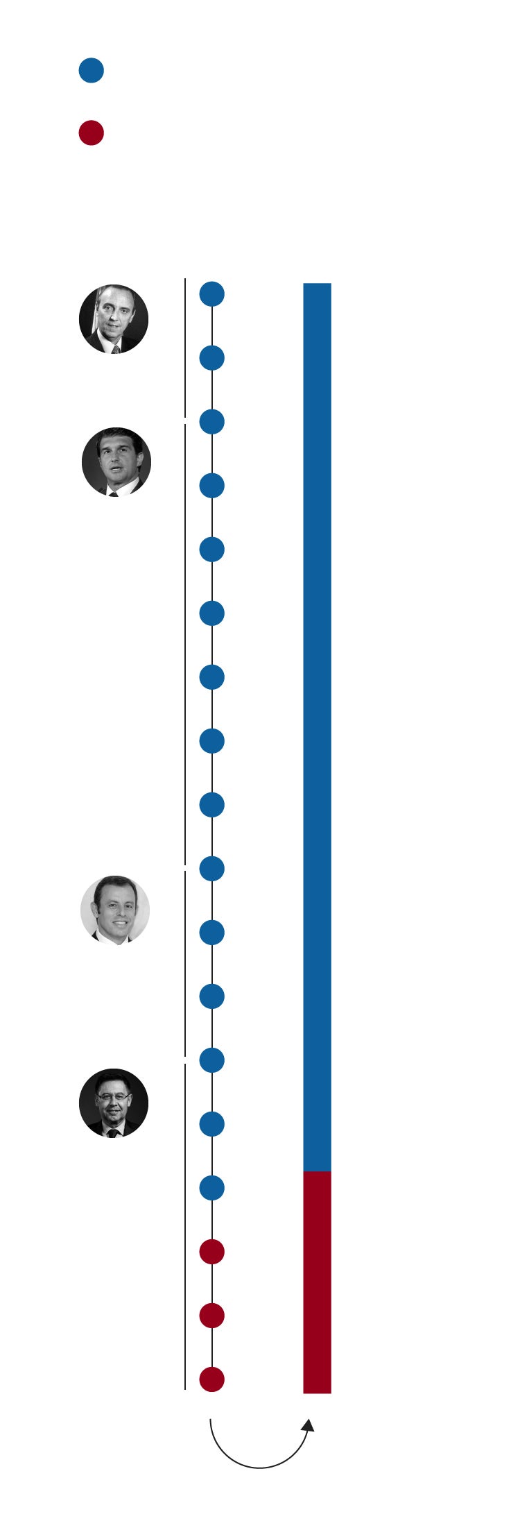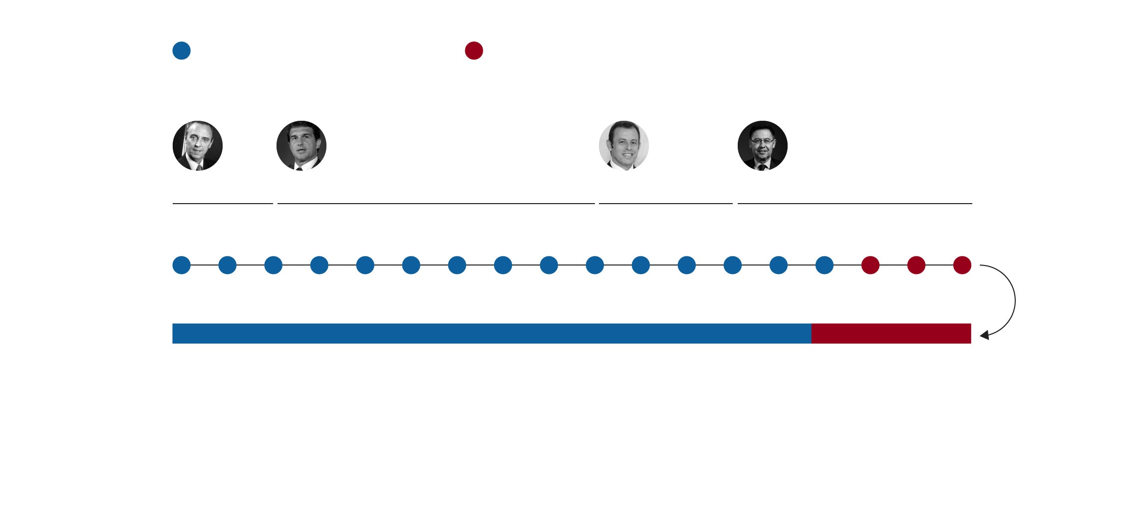 Durante más de dos años, aún sin el VAR en el campeonato, al Barça no le pitaron un solo penalti en contra (78 jornadas de Liga) y en las tres temporadas investigadas le señalaron solo tres, mientras que fueron 33 a su favor. En este período, al Real Madrid, el otro equipo que más pisa el área contraria, le pitaron 27 a favor y 12 en contra. Cuando en 2018 el club presidido por Josep Maria Bartomeu rompió su acuerdo con Enríquez Negreira, los números cambiaron sin embargo de forma drástica para el Barça en este apartado y, en este caso, en su perjuicio. En las últimas cinco Ligas, aunque los penaltis a su favor han sido similares (31), en su contra se señalaron 19, seis veces más.