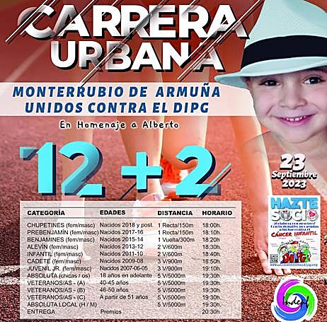 El próximo sábado 23 de septiembre se disputará la Carrera Urbana '12+2 Carrera Urbana Monterrubio - Unidos contra DIPG', carrera incluida en el 10º Circuito de Carreras Populares 2023 de la Diputación de Salamanca. La carrera es en homenaje a Alberto.
