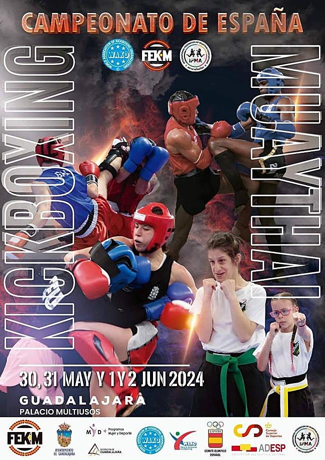Desde hoy y hasta el domingo, 2 de junio, el pabellón Palacio Multiusos de Guadalajara acoge el Campeonato de España de Kickboxing Tatami Sport Senior - Ring Sport (Junior y Senior), Muay Thai e Inclusivo en la modalidades de Point Fighting - Light Contact y Kick Light Femenino y Masculino, en Tatami y Full Contact- Low Kick y K1 (Ring).