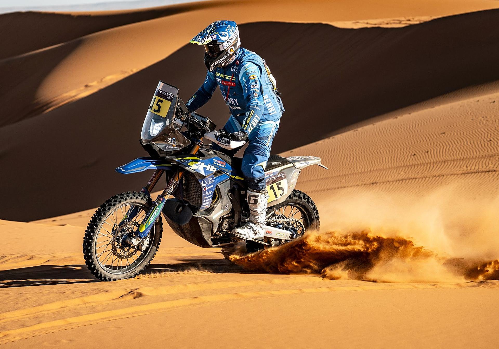 Lorenzo Santolino (Sherco) ha tenido su mejor día en el Rally de Marruecos, con su mejor posición en etapa y ganando un puesto en la general en un día de 300 kilómetros, pero sin el añadido de los largos enlaces, y más terreno del que le gusta al salmantino, con navegación complicada y unas dunas que hoy se le han dado mejor.