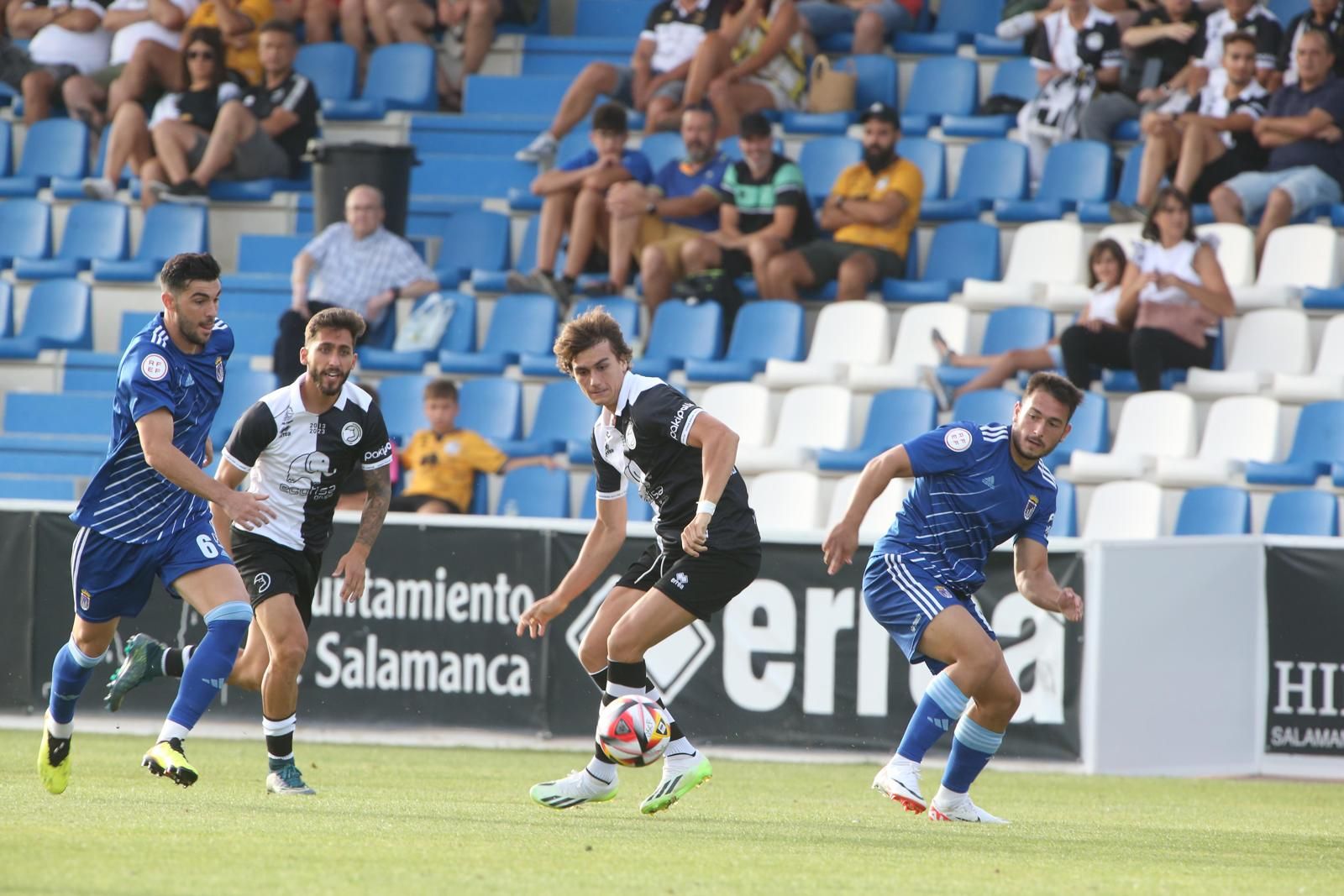 La primera mitad concluyó con otro lanzamiento, en este caso de Jon Rojo, que acertó a desviar a córner con la punta de los dedos Narváez. El dominio abrumador del conjunto charro se materializó tras los 45 minutos iniciales con ese 1-0, aunque podría haber sido algo mayor la renta sin que eso desentonara en el marcador.