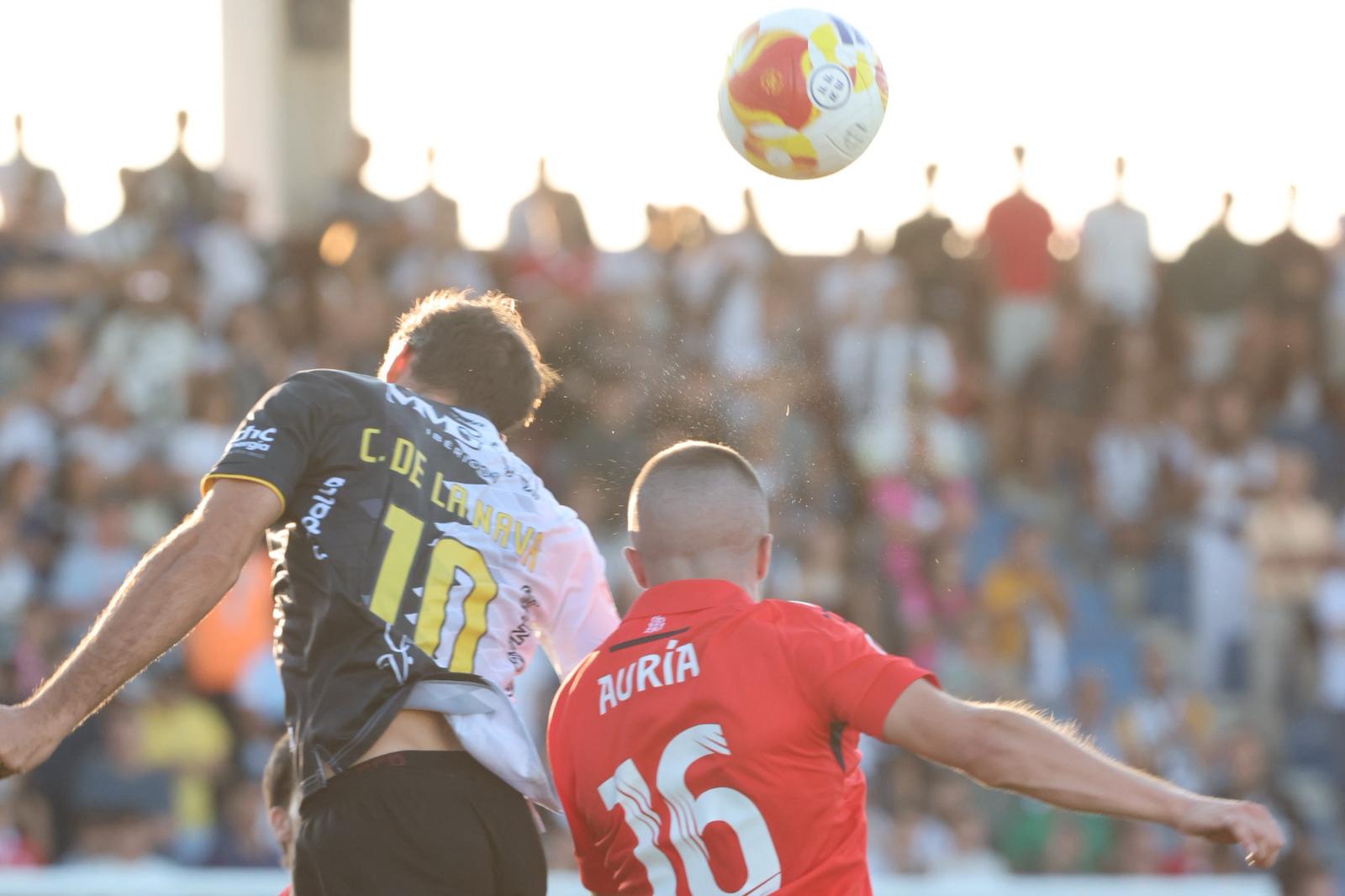 El conjunto de Oriol Riera tenía el esférico en los primeros compases y pisó área en par de ocasiones pasados los primeros diez minutos de juego. Osasuna B se asomaba al balcón del área defendida por Unai Marino y ahí sí, ahí provocaba imprecisiones en la zaga blanquinegra. Encontró un buen disparo Pedroarena para los navarros que atajó bien Unai Marino, justo antes de que cayera lesionado en el área contraria Espejo, quien tuvo que ser sustituido en el minuto 22 por parte de Santi Castillejo. Un pequeño susto en el minuto 26 dejó KO a Juanje y al recién ingresado en el campo, aunque el golpe de ambos no pasó a mayores tras darse la mano con un deportivo saludo.