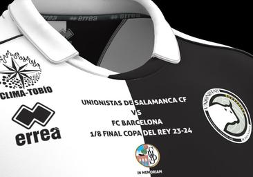 El club charro anunció este lunes que como «la principal razón de ser de Unionistas de Salamanca es homenajear la extinta, irrepetible e inimitable Unión Deportiva Salamanca. Por eso no se nos ocurre mejor ocasión para llevarla, de algún modo, con nosotros en el partido del jueves». Por ello, difundió de forma pública la nueva camiseta (ver imagen) bajo el lema 'Unionistas de Salamanca CF vs FC Barcelona 1/8 de final Copa del Rey 23-24' y debajo un pequeño escudo de la UDS en el centro del pecho, las palabras 'In memoriam'.