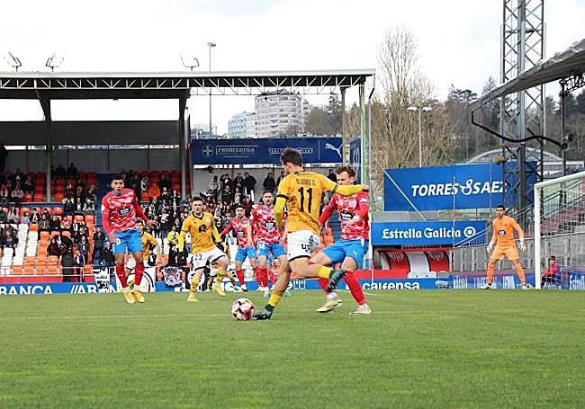 Aunque el CD Lugo no se vino abajo ni mucho menos. Más dueños aún del esférico en su estadio, los locales tuvieron el empate en sus botas. De nuevo Aguza, con Cacharrón en el suelo y batido, aunque con varios defensores por detrás, mandó el balón al larguero después de una ocasión peligrosa del conjunto del Lugo. No solo la clasificación reflejaba la plena igualdad de estos dos equipos, con diferente idiosincrasia en cada caso: también el partido lo estaba poniendo encima de la mesa.