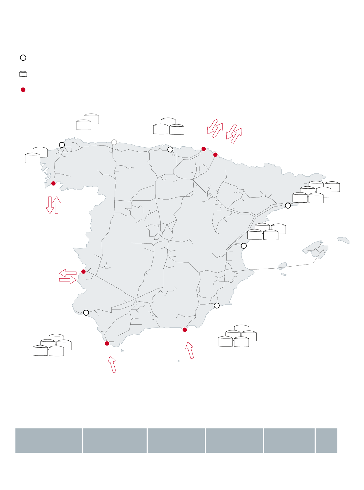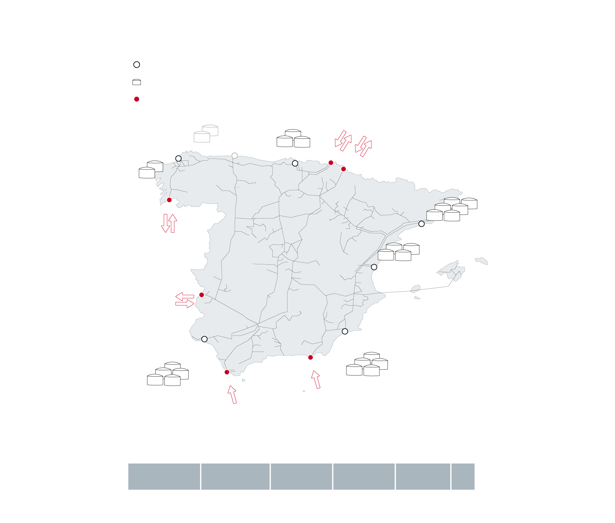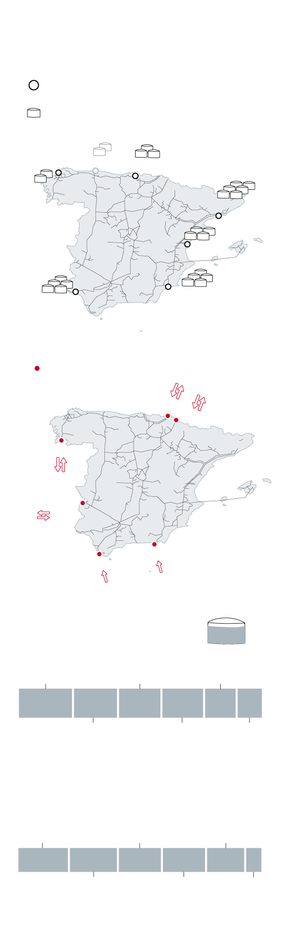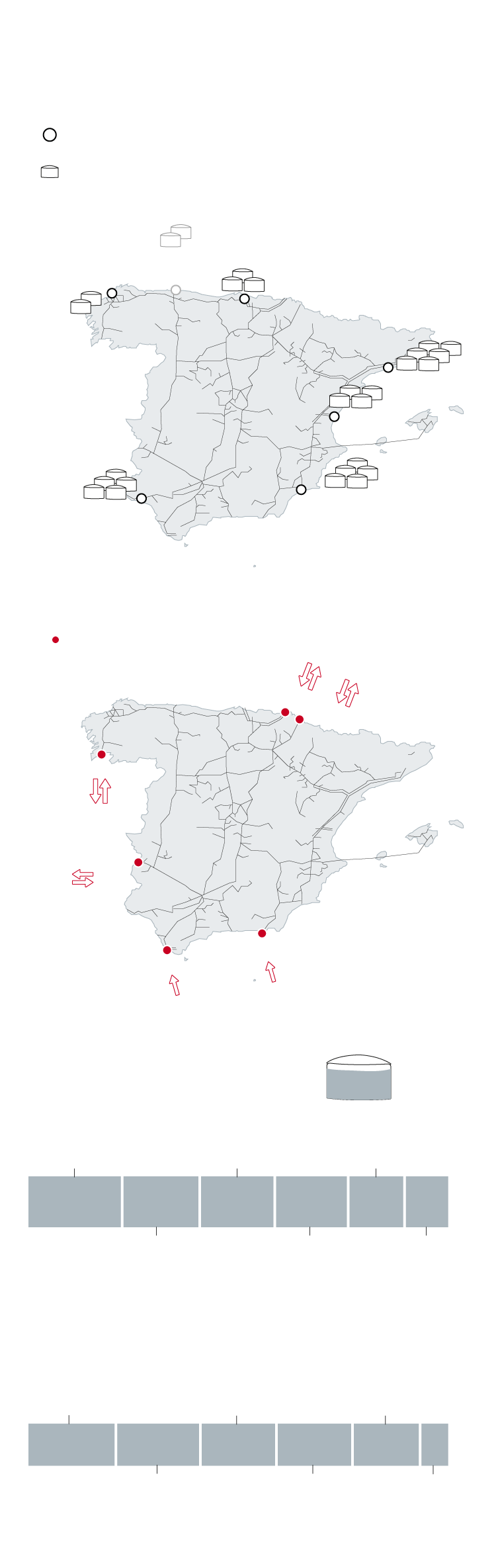La gran baza de España en el nuevo mapa de distribución que se avecina es su enorme capacidad de almacenamiento, gracias sobre todo a las seis plantas regasificadoras de gas natural licuado (GNL) que actualmente operan en el país (Barcelona, Bilbao, Cartagena, Huelva, Mugardos y Sagunto).