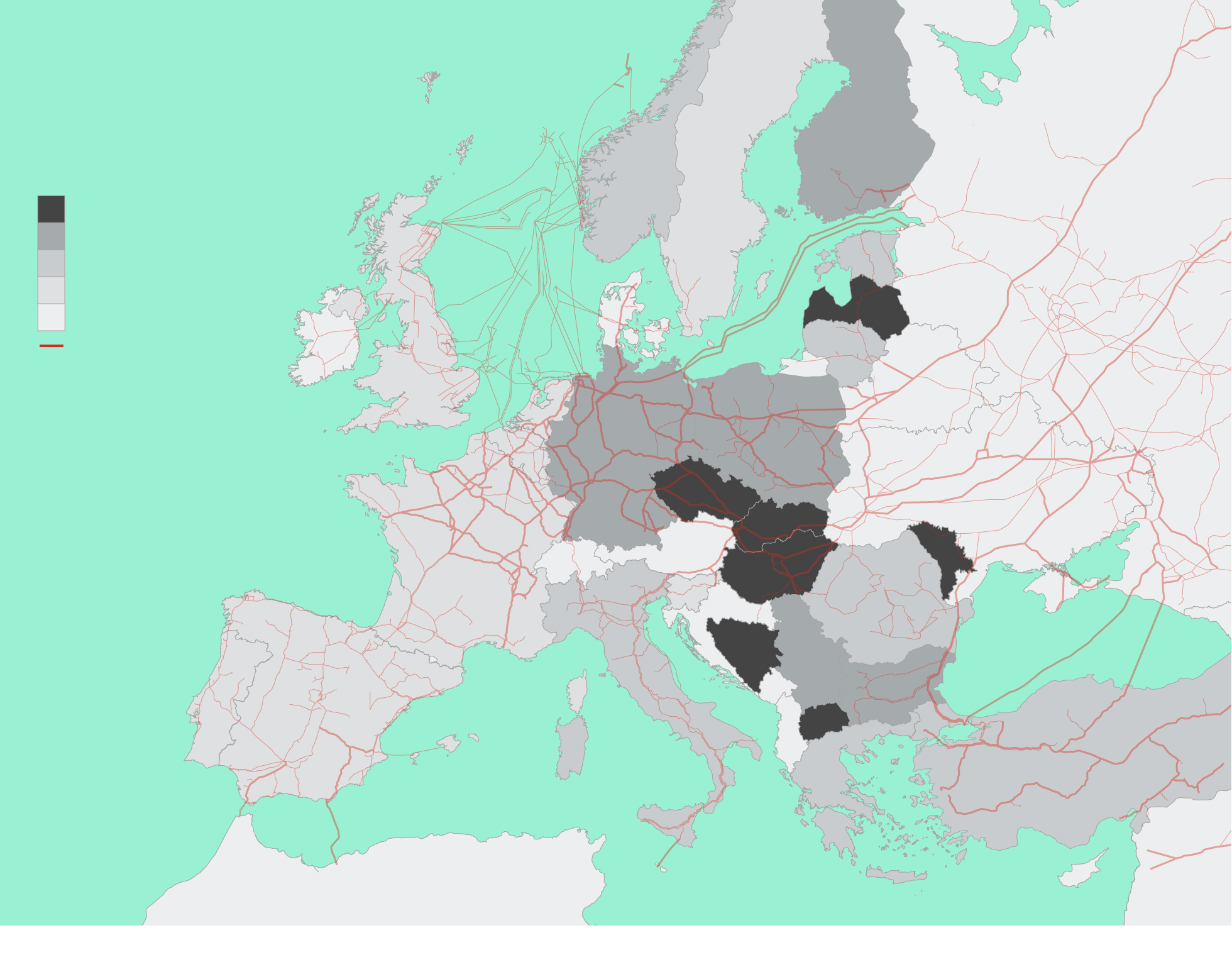 La llegada de gas a través de buques regasificadores se ha convertido en una cuestión primordial. El problema es que no todos los países disponen de estos puntos en los puertos, donde llega el gas natural licuado (GNL) para ser tratado e introducido en los gasoductos. España, por ejemplo, es el país que ostenta un 25% de todas las regasificadoras de la UE, muy por delante del resto de socios. El problema es que apenas tiene capacidad de conexión, vía Pirineos, con el resto de Europa para suministrarles gas.